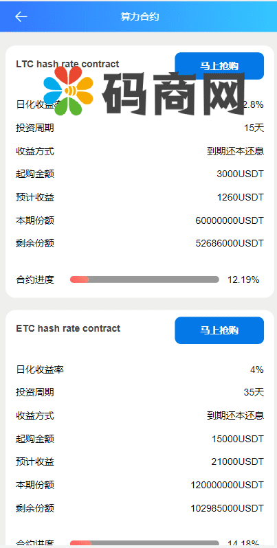 全新二开BTC矿机/算力合约/多语言云矿机区块链系统 2022年更新修复数据库表格缺失,首页无法正常打开 别人二开的BTC矿机系统,支持三种语言 市场行情支持跳动,就不过多介绍了,懂得都懂 kuangj