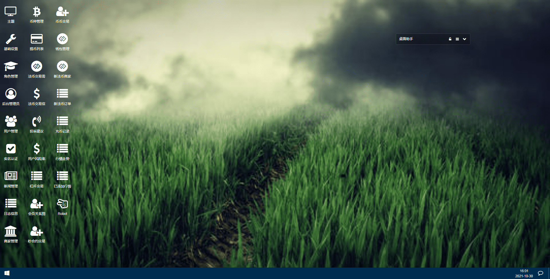1、平台概况(实时行情、高端K线、合约交易、BI数据分析、币种统计、用户统计、交易统计、异常用户)